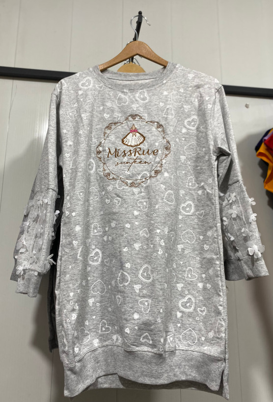 بلوز دخترانه ملانژ قلبی آستین شکوفه ای مناسب پاییز و زمستان
