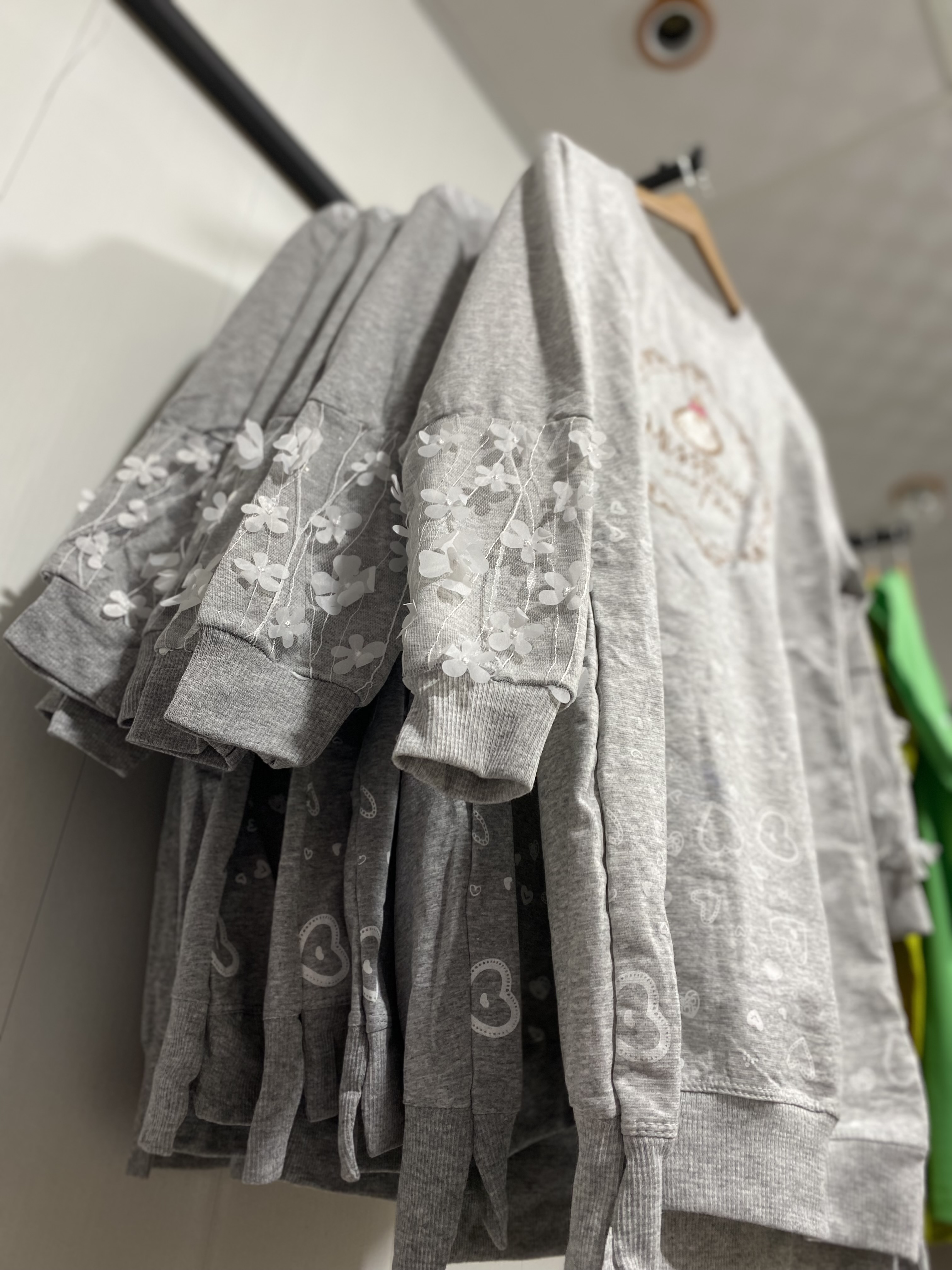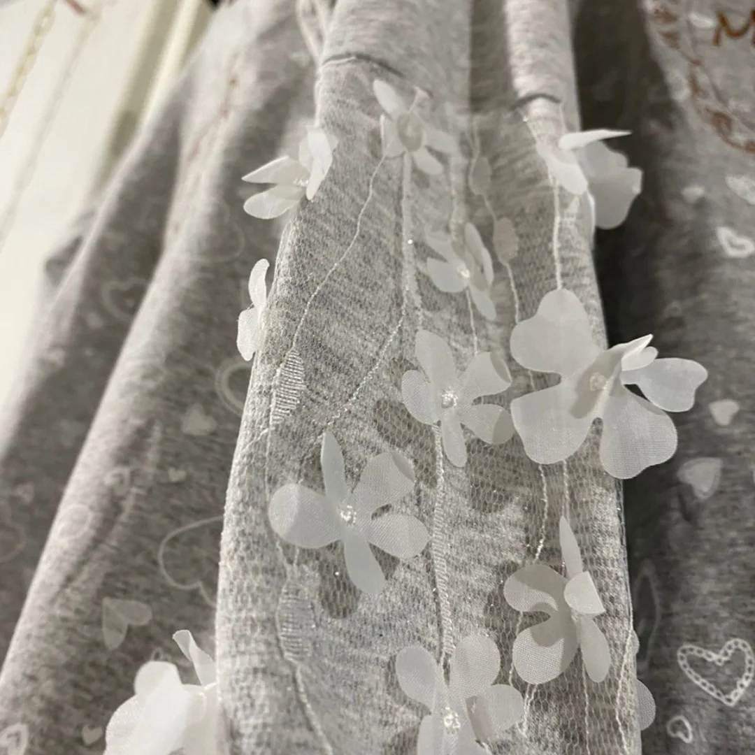 بلوز دخترانه ملانژ قلبی آستین شکوفه ای مناسب پاییز و زمستان