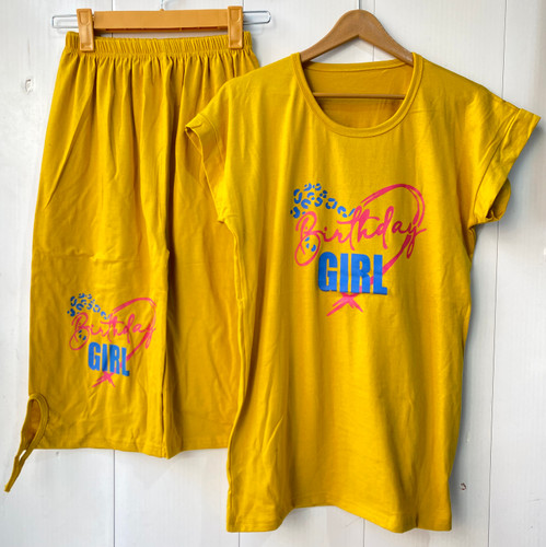 تیشرت و شلوارک زنانه فری سایز طرح Girl رنگ خردلی